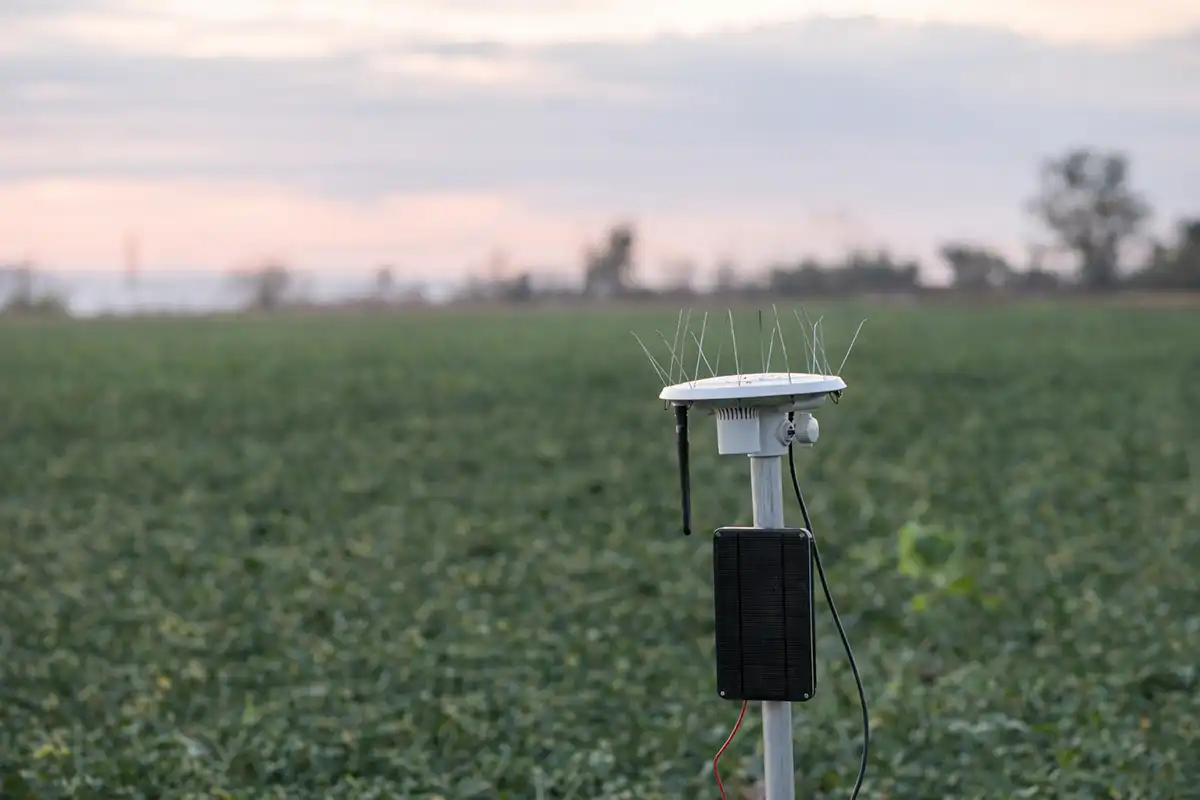 The Arable Mark 2 is a canopy sensor and weather station, collecting up to 40 different climate and plant metrics, such as evapotranspiration, NDVI, and crop water balance.